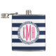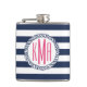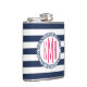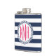 Preppy Nautical Navy & White Strip Pink Monogram Flachmann