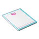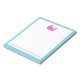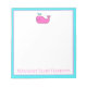 Dieses niedliche Notizblock verfügt über einen präparierten rosa Wal auf Weiß mit einem Rand von hellen Aqua. Personalisieren Sie Ihre Auswahl an Namen oder Sondertexten.