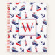 This cute monogrammed spiral notebook features a nautical pattern of sailboats, lighthouses, anchors and ships in classic red, white and blue. Personalize the monogram on the front with your choice of name and initial. Great for back to school.