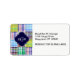 Preppy Patchwork Madras Navy Quatrefoil Monogram Adressaufkleber