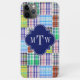 Preppy Patchwork Madras Navy Quatrefoil Monogram Case-Mate iPhone Hülle