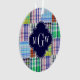 Preppy Patchwork Madras Navy Quatrefoil Monogram Ornament