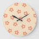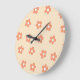 Preppy Peach White Hippie Blume Muster Große Wanduhr