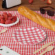 Preppy Picnic Red Kariert Gingham Party Paper Teller.