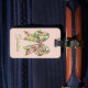 This fun personalized luggage tag features a beautiful floral bow in soft watercolor shades of pink and green on a background of soft pink. Personalize with your choice of name on the front and special text on the back.