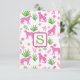 Preppy Pink Cheetah Monogram White Dankeskarte