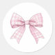 Preppy Pink Gingham Bow Runder Aufkleber