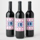 Preppy Pink Navy Trellis Bamboo Muster Monogram Weinetikett