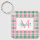 Preppy Pink und Green Kariert Monogram Schlüsselanhänger