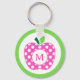 Preppy Pink und Green Polka Dot Apple Monogramm Schlüsselanhänger
