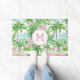 Preppy Pink und Green Tropical Palm Trees Monogram Fußmatte