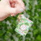 Dieser niedliche mit Monogramm Schlüsselanhänger weist ein prächtiges rosa und grünes Palmenmuster auf. Personalisieren Sie die Vorder- und Rückseite mit Ihrer Auswahl an Anfangs- und Kontaktinformationen.
