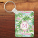 Preppy Pink und Green Tropical Palm Trees Monogram Schlüsselanhänger