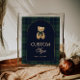 A charming baby shower table sign featuring classic green and navy plaid with a cuddly teddy bear. A simple, timeless detail for an elegant celebration.