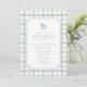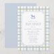 This preppy baby shower invitation is ideal for honoring a mom-to-be who loves classic nursery decor, traditional baby style, and storybook-inspired details. The soft blue tones make it especially suited for a baby boy shower, while the timeless plaid pattern adds a charming, upscale feel. A beautiful choice for a refined, memorable baby shower with a touch of vintage nursery elegance.
