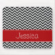 Ein trendy schwarzes und rotes Zickzack Muster wird auf diesem kundenspezifischen mousepad gekennzeichnet. Modern und niedlich -- Personifizieren Sie leicht mit Ihrem Namen!