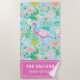 Dieses kann Beachtuch-Design verfügt über einen prächtigen Flamingo-Sommer-Druck. Sie können mit Ihrem Familiennamen oder Ihrem Air BNB-Namen personalisieren. Diese Handtücher eignen sich ideal für einen Strandurlaub oder für einen Zuhause.