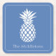 These cute personalized square paper party coasters feature a classic white pineapple on a background of soft blue. Personalize with your choice of name or special text.