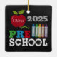 Celebrate your little learner’s big year with this personalized “Preschool 2025” Christmas ornament! This square ceramic ornament features a colorful chalkboard-style design with a bright red apple, rainbow crayons, and bold lettering spelling out “PRE SCHOOL.” The standout feature? The apple is customizable with your child's name, making this keepsake extra special.