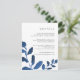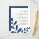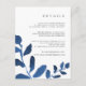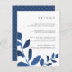 Diese schicke, blau-weiße und kobaltblaue Gästekarte, die sich mit unserer Hochzeitskollektion Pressed Botanical in Indigo abstimmen lässt, zeichnet sich durch ein lebendiges blaues Aquarellblau aus, das Ihre wichtigsten Hochzeitsdetails wie Hotelunterkünfte, Informationen zum Empfang, Website und vieles mehr abbildet. Fügen Sie Ihren benutzerdefinierten Text mit den angegebenen Feldern hinzu und verwenden Sie die Funktion Anpassen, um Schriftart, Größen und Abstand anzupassen.
