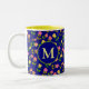 Pretty Blue Rose Pattern Monogram Zweifarbige Tasse
