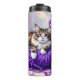 Pretty Cat with Purple Flowers and Yarn Thermosbecher