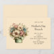 A Mother's Day brunch invitation with a cute image. Blue. pink and cream colored flowers with green leaves. Set inside a green flower pot with a green plaid cloth hanging over the side.