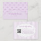 Trendy vintage-inspired purple and white bow stripes pattern business card designed for pretty, girly, feminine brands. Perfect for handmade baby clothing shops, makeup artists, and small business owners. Features stylish layout with QR code integration for modern, professional branding.