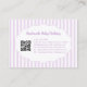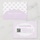 Trendy vintage-inspired purple and white bow stripes pattern business card designed for pretty, girly, feminine brands. Perfect for handmade baby clothing shops, makeup artists, and small business owners. Features stylish layout with QR code integration for modern, professional branding.