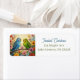 Cute return address labels for bird lovers with impasto painting style blue and green parakeets and flowers.