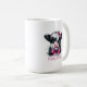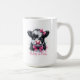 Stylish black and white cow with a cute pink bow- the perfect design for animal lovers who adore a chic and playful touch.