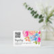 A bohemian pink and blue chic floral watercolor bridal shower qr code registry card with pretty hand painted flowers in and blooms with greenery foliage. A pretty garden party bridal shower with a modern script font brush.