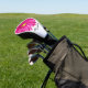 This golf driver head cover has a statement-sized magenta pink gerbera daisy and an editable name for the lady golfer in your life. Give these to your mom, sister, or anyone else who you want to give a little present that relates to their hobby. Cute and useful, too!