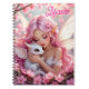 A pretty pink anime elven fairy holding her cute white baby dragon personalized notebook.