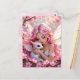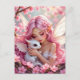 A pretty pink anime elven fairy holding her cute white baby dragon postcard.