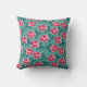 Pretty Pink Roses and Polka Dot Pattern on Teal Kissen