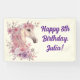 Set the scene for a pony-perfect birthday with this Pretty Ponies and Petals custom banner! Featuring a soft watercolor horse with a pastel floral crown, this beautiful banner makes the perfect backdrop for cake tables, gift displays, or party photo ops.