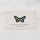 Elegant and pretty business cards with a cool watercolor butterfly design on a rustic tan linen look background. Ideal for aestheticians, spas, cosmetologists, hair stylists, massage therapists and yoga teachers.