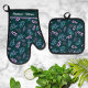 Pretty Watercolor Dark Floral Personalized Ofenhandschuh & Topflappen-Set
