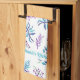 Cute, personalized kitchen towel in a pretty color pattern of pink, purple and aqua blue watercolor floral design.