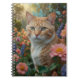 Pretty white orange cat in floral garden notizblock