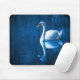 In lovely nature scene of a white swan swimming on peaceful blue lake. The dark blue shadows contrasts nicely with the soft lighting on this peaceful swan.
