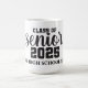 Feiern Sie Ihre Reise und Ihre Errungenschaften mit dieser stilvollen Tasse mit dem kühlen und eleganten Design der "Senior Class of 2025". Der Text wird in einem Mix aus klassischen und kursiven Schriftart hervorgehoben, wobei ein Herzsymbol den Punkt im Buchstaben "i" von "Senior" ersetzt. Diese Tasse eignet sich hervorragend für das Gedenken an Ihre High School Jahre und für die Zukunft. Unter dem Bild, zeigen Sie stolz Ihren High School-Namen, um es einzigartig zu machen.
