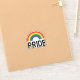 Dieses Design zeigt den Wortstolz unter einem bunten Regenbogen.
