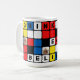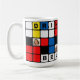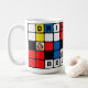 Primäre Farbquadrate mit Buchstaben und Fotos Kaffeetasse