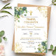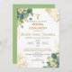 Mit dieser Einladung laden Sie die Liebsten ein, die Erste Kommunion Ihres Kindes zu feiern, mit grünen Blätter und goldenen Blume. Ideal für Jungen und Mädchen ist es die ideale Wahl für eine katholische heilige Kommunion. Spanisch: Invita a tus seres queridos a star la Primera Comunion de tu hijo/a con esta Einladung.