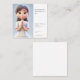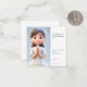 Tarjeta de invitación a la primera comunión, diseño niña rezando, ojos abiertos, vestido blanco