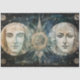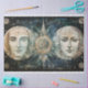 Griechisch-gotische Art Celestial Primitive Malerei mit einer mondbeleuchteten Nacht mit schönen Gesichtern in der Nacht Himmel. im Stil der primitivistischen Kunst, illusorisches Portrait, Seacape.