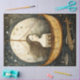 Schöne und serene primitive Malerei mit einer Meerjungfrau mit Stars und einem Boot, im Stil der primitivistischen Kunst, Illustration Portrait, Seekandschaft.