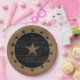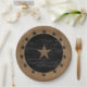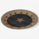 Dieses primitive Star Paper Plate mit primitiven Sternen und einem alten Papier- und schwarzen Holzhintergrund ist perfekt für Ihre primitiven oder ländlichen Party.